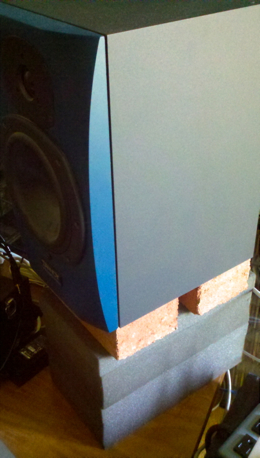 A few years ago I heard a demonstration of the Primacoustic Recoil Stabilizer at a trade show. It made a significant difference in accuracy for the NS-10s they were using in the demo. The idea was so elegant it wasn’t difficult imagining how I might make my own version. Back in my studio, staring at the foam under my speakers, I decided it was time to try.