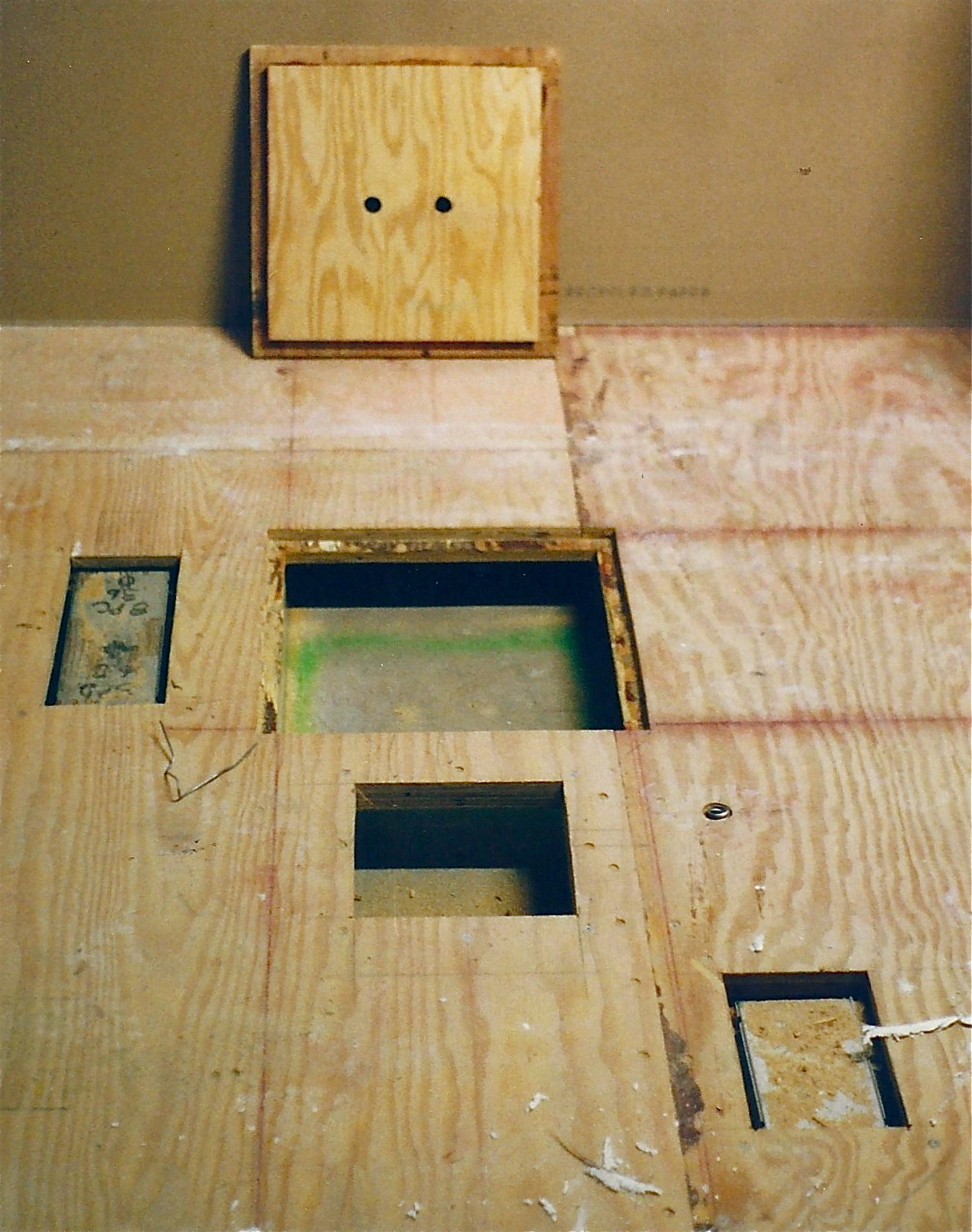 Ports with covers were made at key locations to allow access down to the sub-floor channels. Other panels and boxes were installed for power, ethernet, etc.