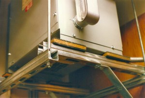 This slat diffusor allowed us to pour cold air down at a high volume and low velocity. Unfortunately, if you sat directly beneath it you often needed sleeves because this system chilled the room very quickly.