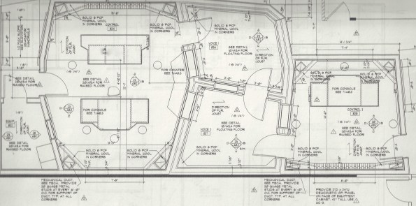 In 2002 I worked with contractors (construction, acoustical and wiring) to build the recording studios where I would work for the next 9 years. The line drawings indicate two control rooms with two iso booths and a machine room.